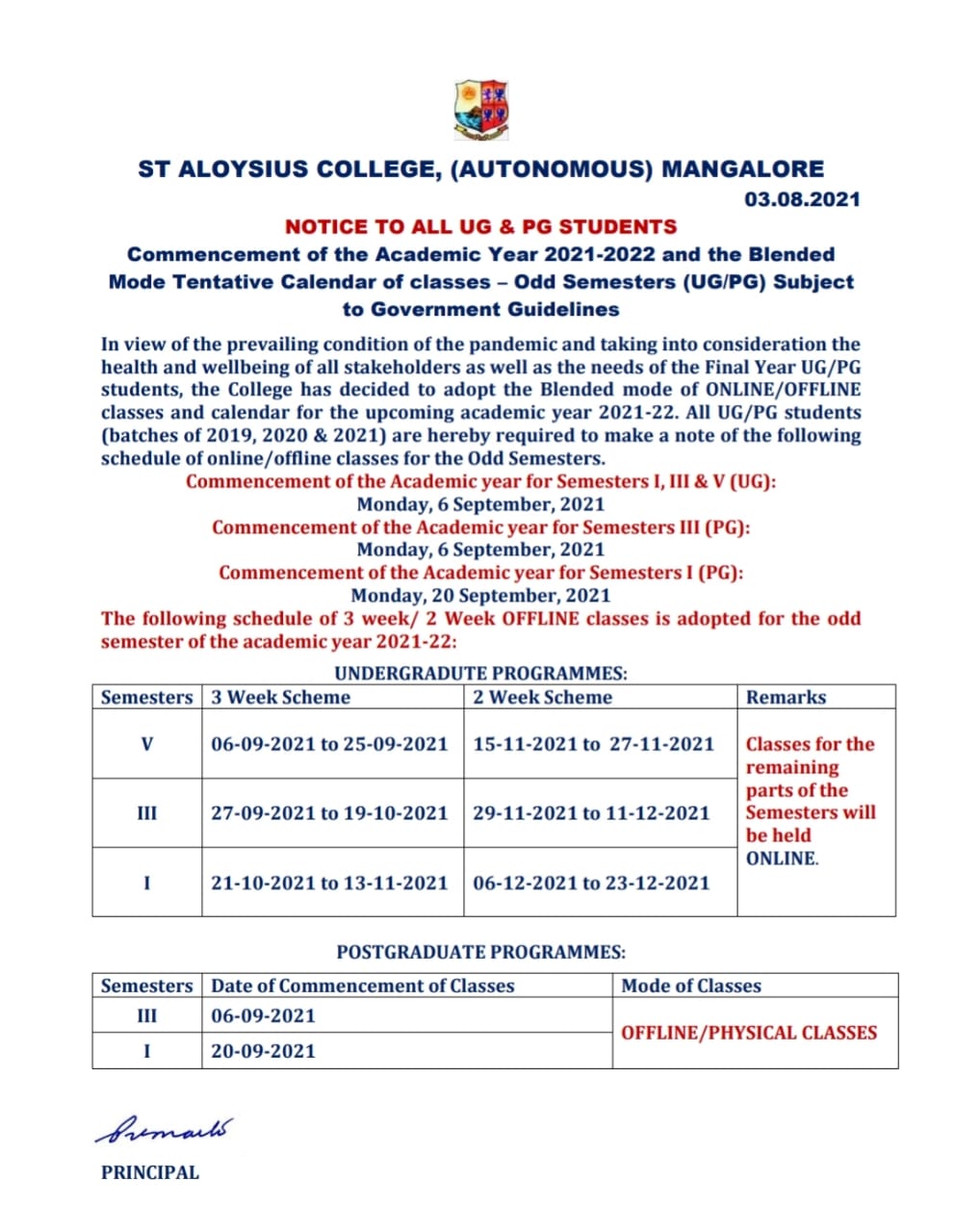 NOTICE TO ALL UG/PG STUDENTS REGARDING COMMENCEMENT OF CLASSES - 2021-22