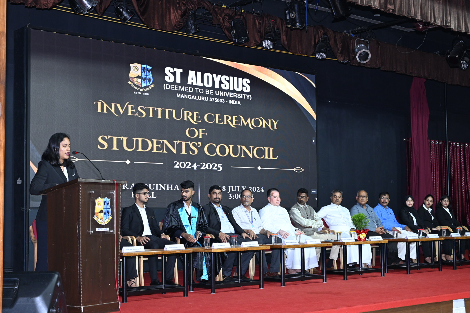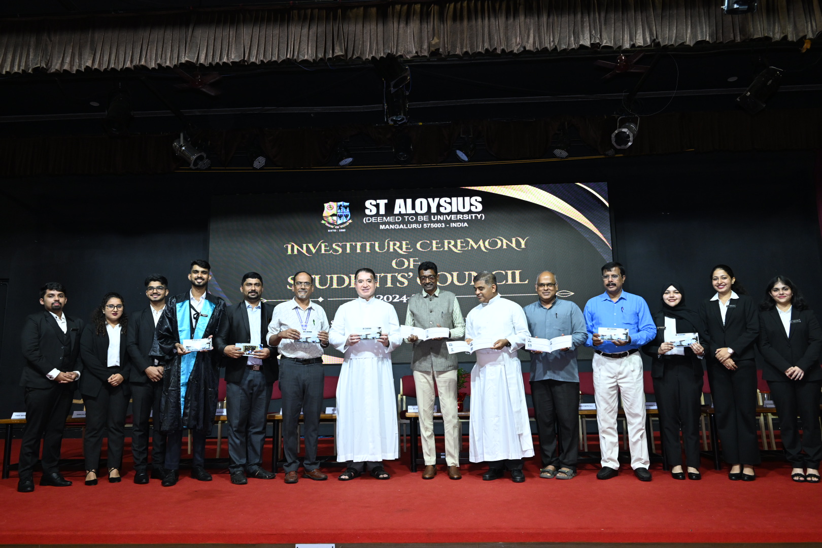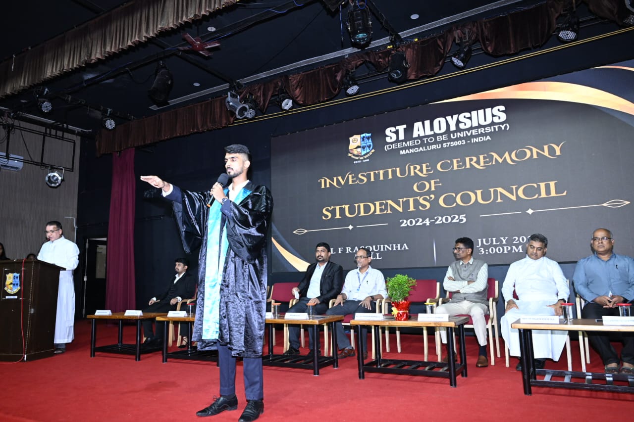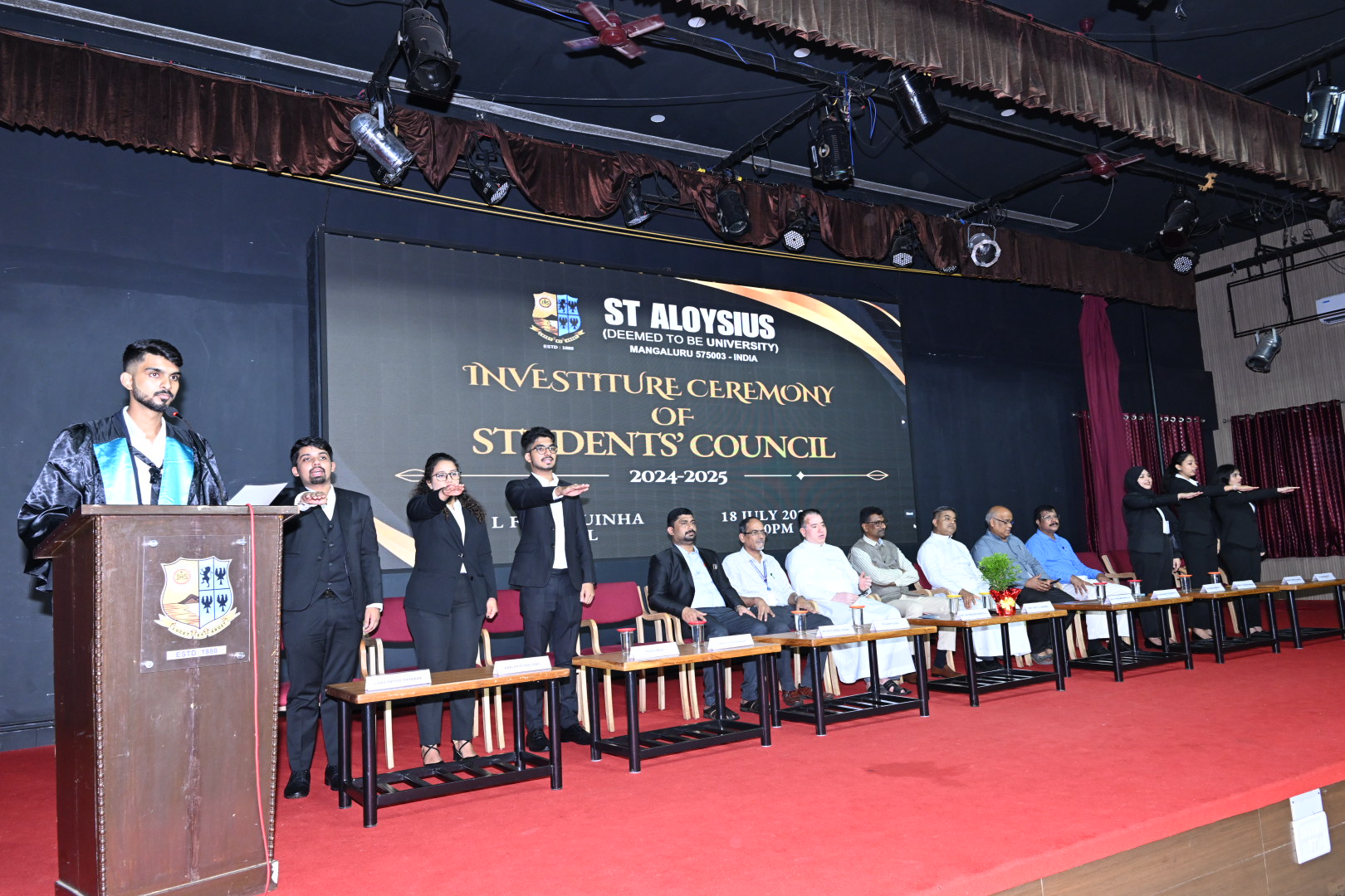 The Investiture Ceremony of the Students’ Council 2024-25 of St Aloysius (Deemed to be University), Mangaluru was held on 18th July 2024 in the L F Rasquinha Hall of LCRI Block.